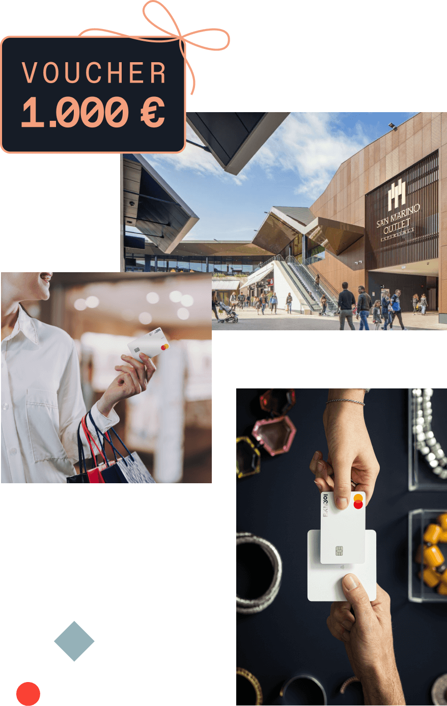 Ritira la tua nuova carta di debito e partecipa al concorso esclusivo — Cambi carta, vinci con stile — lo shopping da sogno a San Marino Outlet Experience.